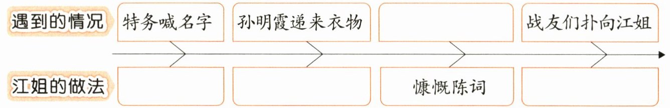 遇到的情况:特务喊名字、孙明霞递来衣物、____、战友们扑向江姐