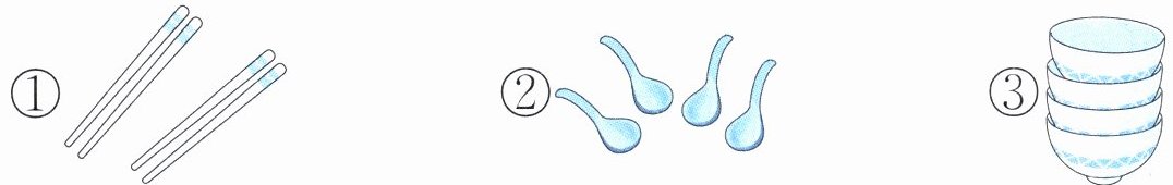 2. 天天一家四口吃午饭,下面是天天取的餐具,