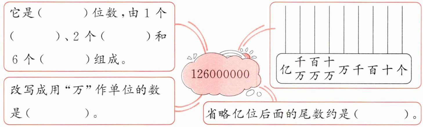(1)截至 2024 年底,我国共有体育场地四百八十四万一千七百个,体育场地面积为 4230000000 平方米。横线上的数写作(