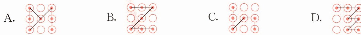 3. 妈妈的手机解锁用的是图案密码,这个图案里面只有3个锐角,可能是下面的图案(