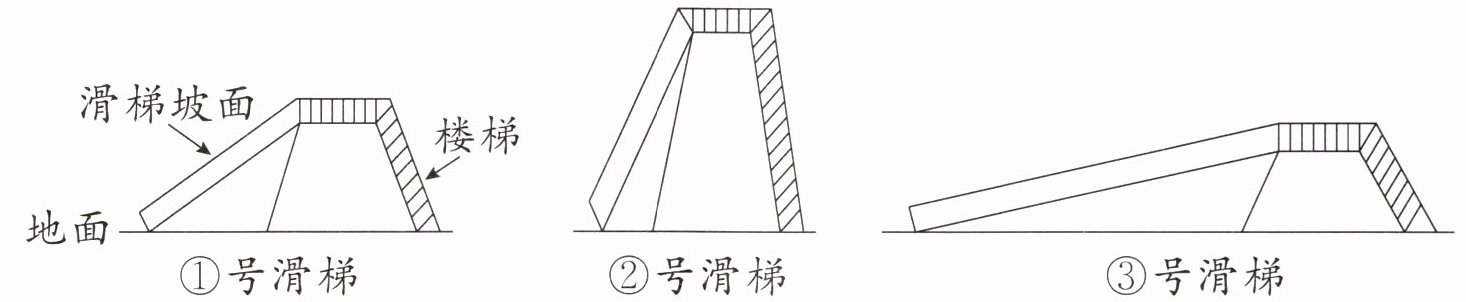 5. 儿童乐园要安装滑梯,设计师提供了下面三种类型的滑梯(如图)。通过观察滑梯坡面与地面形成的夹角,从安全性和趣味性考虑,应该选择(