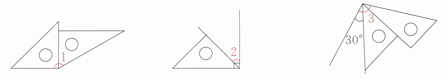 三、根据三角尺中各个角的度数,求出未知角的度数。