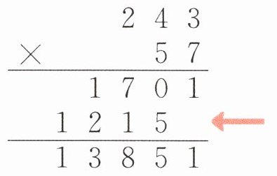 2. 用竖式计算 243×57 的过程中,箭头所指的“1215”表示(