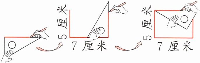 )厘米的线段作为长方形的长。第二步:分别以画出线段的两个端点为垂足,向同一方向画两条长为(