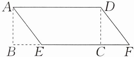 4. 张爷爷打算开垦一块长方形花圃(如图长方形ABCD),他已经做好了围花圃的篱笆。由于场地限制,张爷爷只能把长方形花圃改成平行四边形花圃(如图平行四边形AEFD),那么他做好的篱笆(