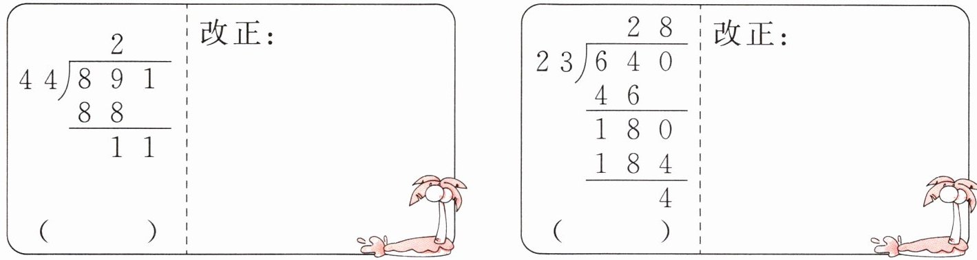 解析第一个竖式:余数是11,不够商1,商的个位上没有写数,不够除时应用0占位。