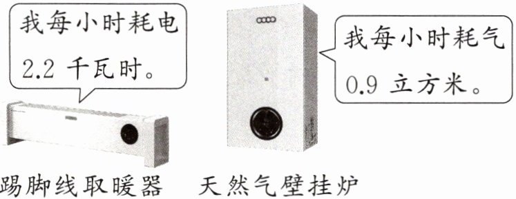 4 我国的集体供暖以秦岭、淮河为界,北方供暖,南方不供暖,因此南方家庭多自备取暖设备。小锦家需要采购取暖设备(每天使用8小时),现有两种选择(如下图)。已知电费每千瓦时0.6元,天然气每立方米2.5元,小锦家采购哪种取暖设备更省钱呢?