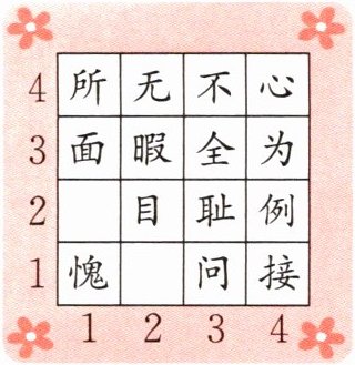 (3)从制作好的卡片中选取数对( , )、( , )、( , )和( , )上的汉字,可以组成成语( )。