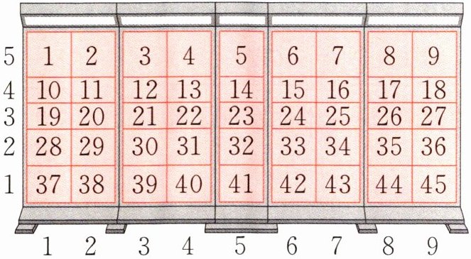 (2)王阿姨选择了快递柜接收服务,快递员把她网购的两个快递放在了同一行相邻位置,其中一个快递在(4,3)的位置,即(