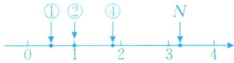 (1)下图中点N表示的是算式( )的商(填序号)。在图中标出其余算式的商的大概位置(标序号)。
