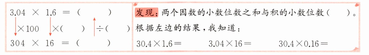 1 填一填,明晰小数乘法中因数与积的小数位数的关系。