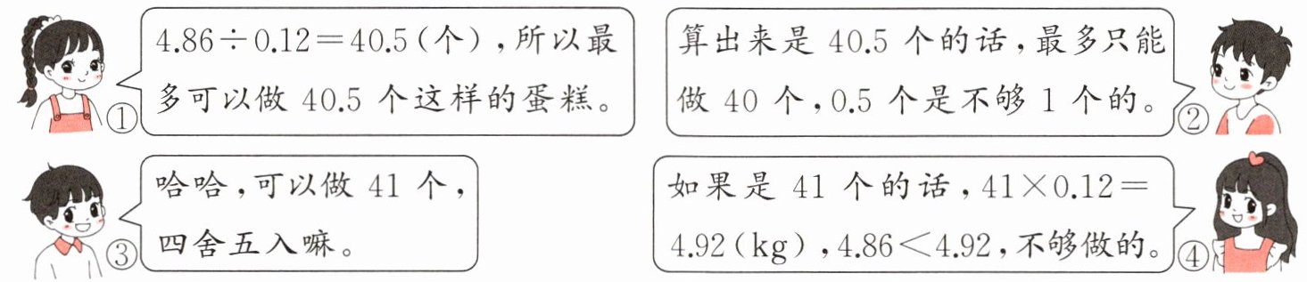 ④如果是41个的话,41×0.12= 4.92(kg),4.86<4.92,不够做的。