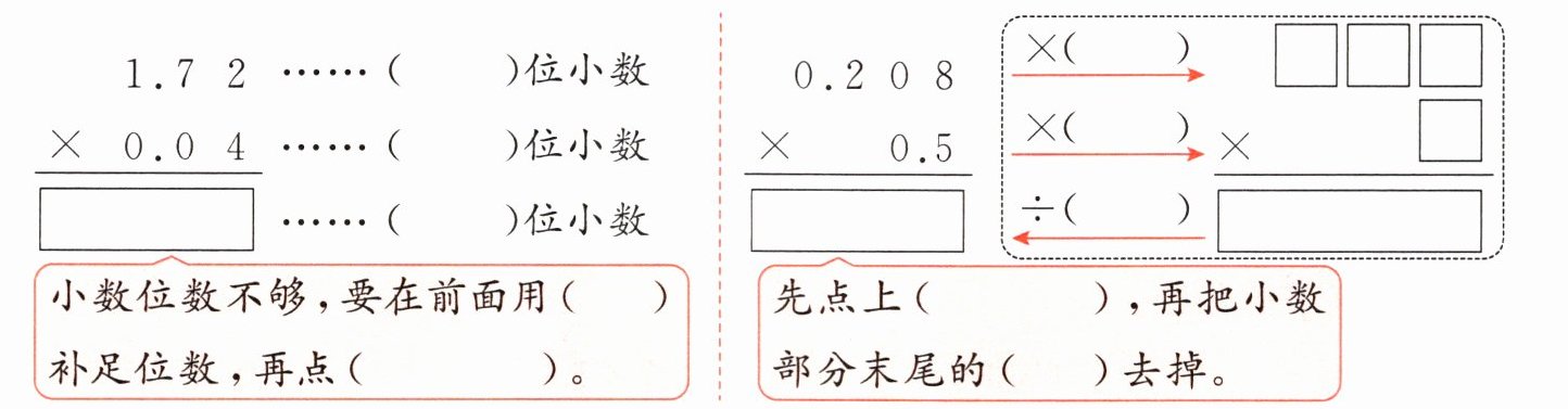 A×B:先按整数乘法算出52×13=676,再数出因数中一共有24位小数(A、B均为12位小数),“676”是三位数,最后在“676”前面添上21个0再点上小数点。