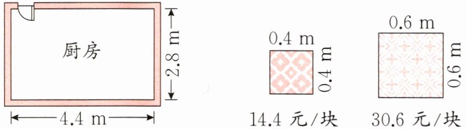 3. 鑫鑫家的厨房(如图)要重新铺设地砖。下面是妈妈比较喜欢的两款地砖的相关信息。