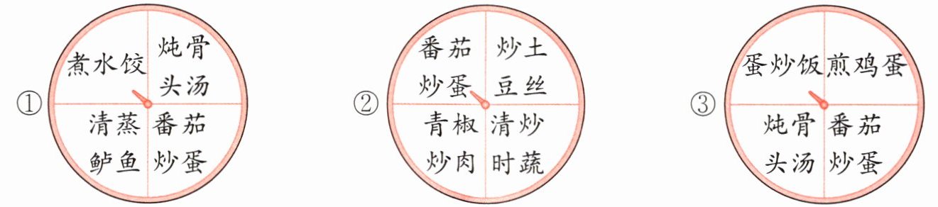 (3)①号和②号转盘都没有“煎鸡蛋”,选择这两个转盘,不可能转到“煎鸡蛋”。