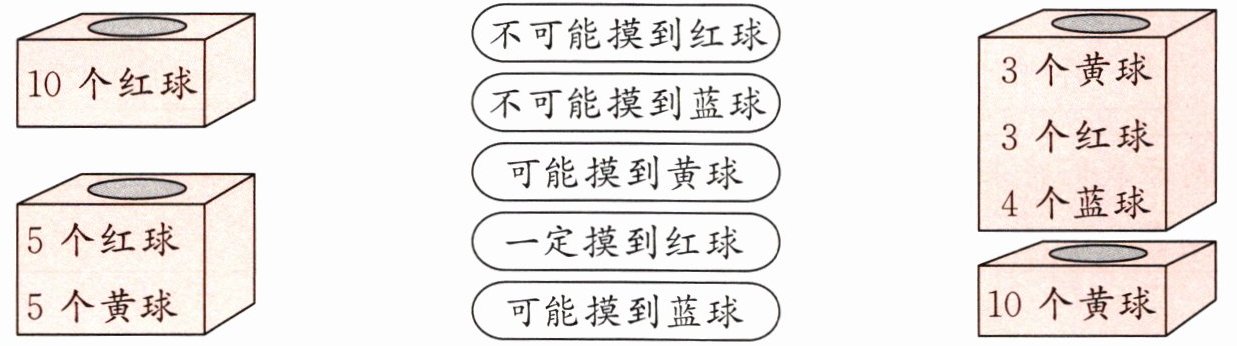 3 从盒子里摸出一个球,结果会是什么?连一连。