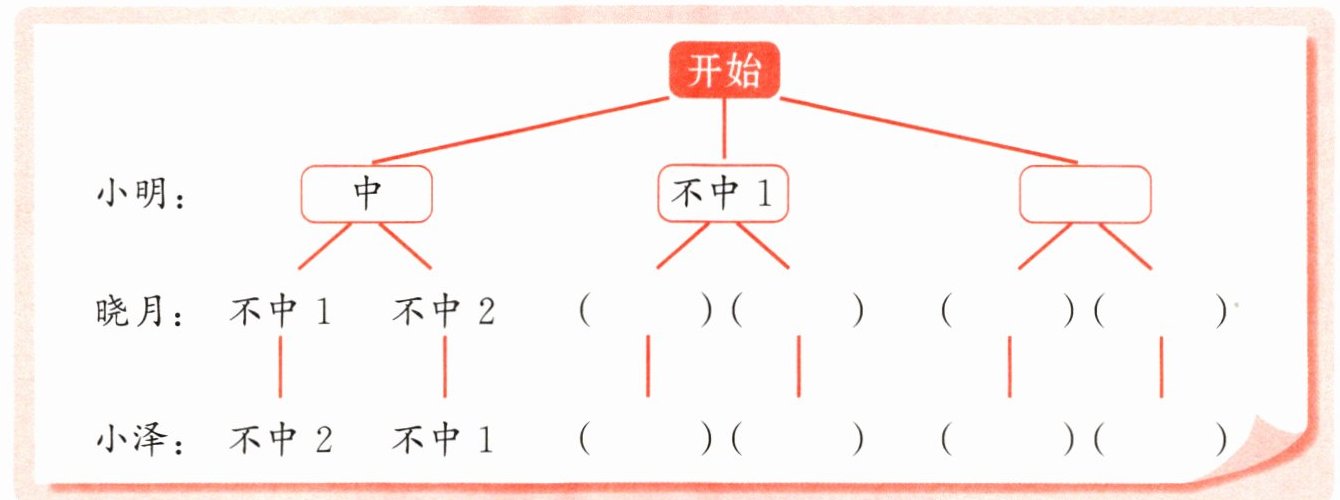 从上图中可以看出,3个人轮流抓阄,一共会出现( )种可能的情况,每个人有( )种可能赢的情况,每个人赢的可能性( )(填“相同”或“不同”)。