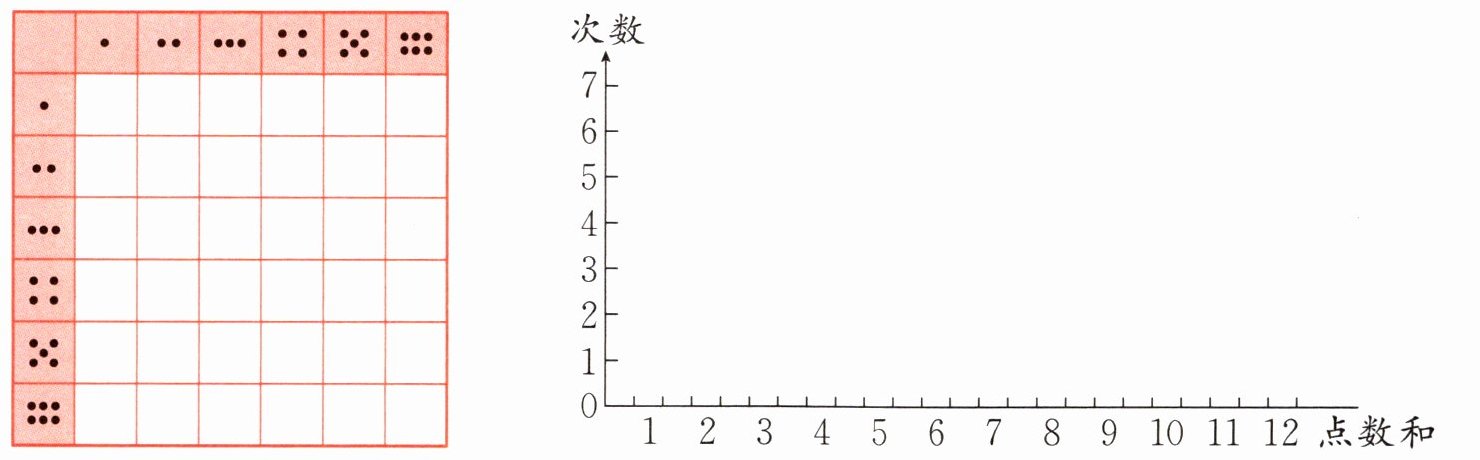 2 同时掷出两枚骰子,将朝上的点数之和填入表格中。