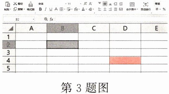 3. 如图,在某办公软件的表格中灰色格的位置可以用“B2”表示,那么红色格的位置可以用“(