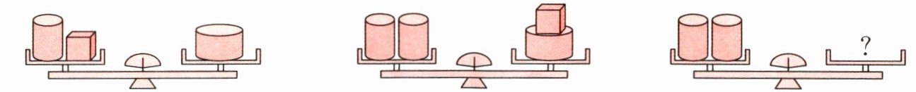 (4)图中第一架天平和第二架天平平衡,那么第三架天平的右边放(