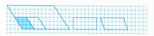 (1)在方格纸上分别画一个长方形和一个平行四边形,使它们的面积都与图中平行四边形的面积相等。