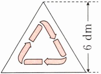 4 小美准备用铝板制作一个环保标志牌(如下图),标志牌的高是6 dm,对应的底的长度是高的1.2倍,制作一个这样的标志牌至少需要多少平方分米的铝板?在标志牌的正反两面涂清漆,若每平方分米需要8.5 g的清漆,则一共需要多少克清漆?