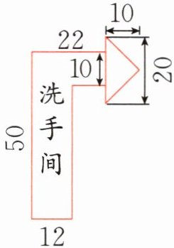 22×10+(50-10)×12+20×10÷2=800(cm²)