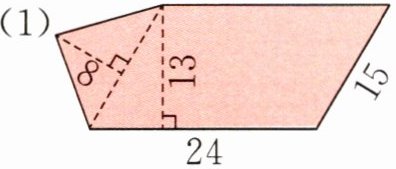 (1)将图形分割成平行四边形和三角形,求面积和。