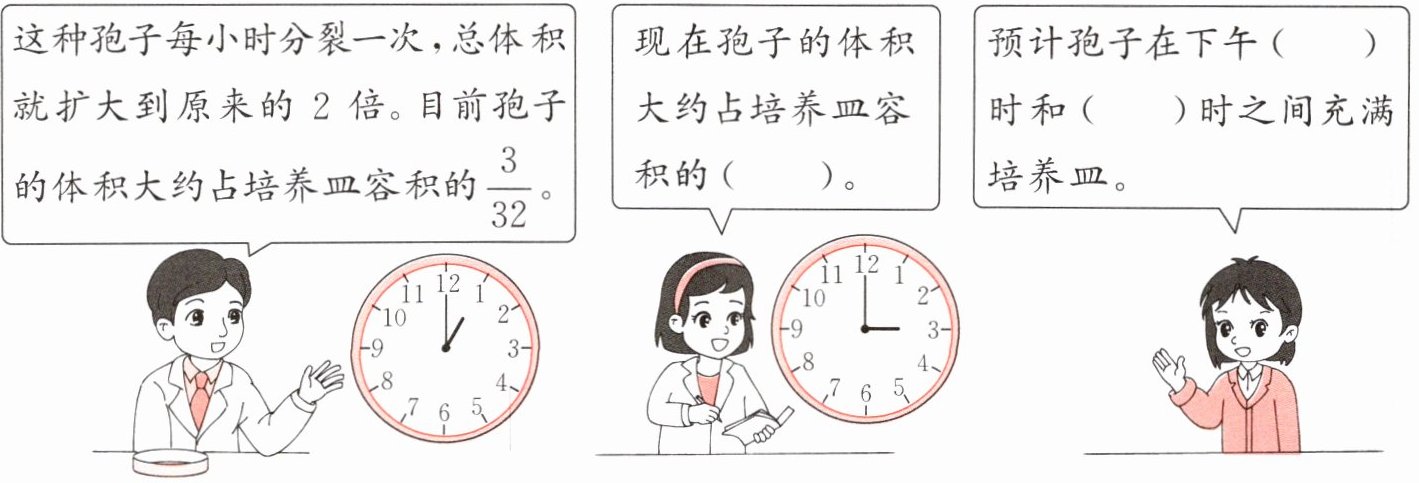 )提出的问题是无法用算式$\frac{2}{5}×4$解决的。要解决这个问题,列式计算是($\frac{2}{5}×(4−1)=\frac{6}{5}$(分)