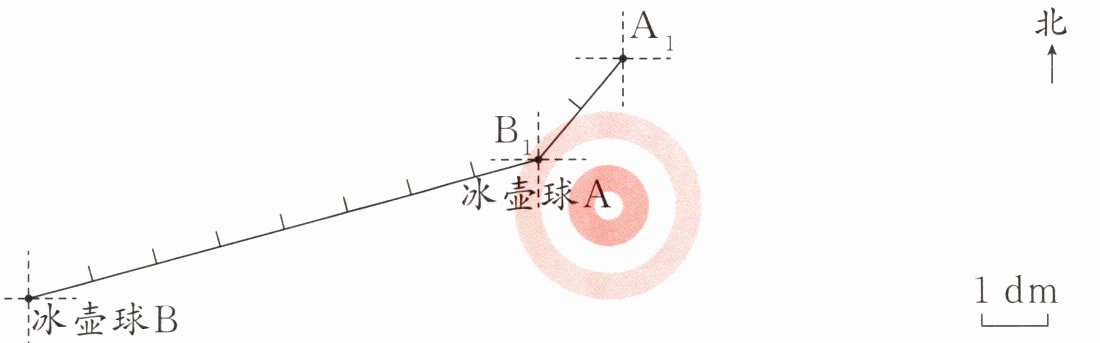 1. 冰壶球 B 向( )方向移动了( )dm,到达$ B_1$位置。