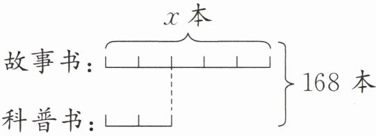 解析 故事书有x本,科普书的数量是故事书的$\frac{2}{5}$,则科普书有$\frac{2}{5}x$本。根据题图可列等量关系式:故事书的数量+科普书的数量=168,根据等量关系式列方程求解即可。