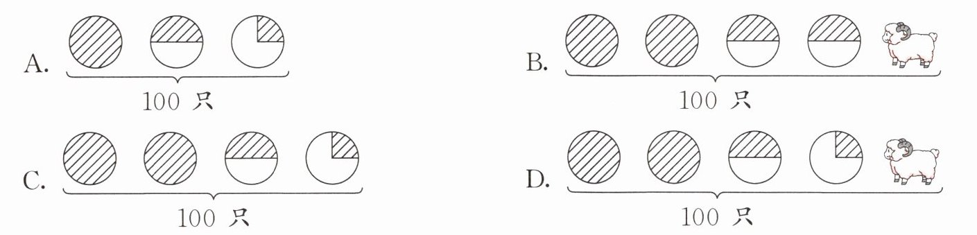 (1)用代表甲原来赶的羊的只数,能正确表示出题目中数量关系的是图( )。