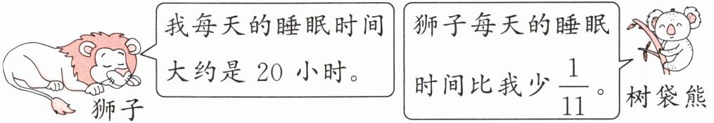$20÷(1 - \frac{1}{11})=22$(时)答:树袋熊每天的睡眠时间大约是22小时。