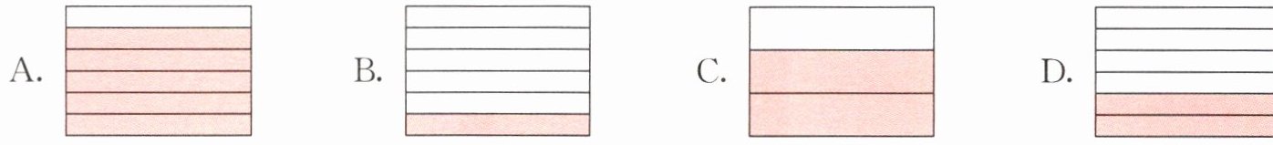 (3)姥姥榨了一杯纯果汁,喝了半杯后,觉得有点浓,就兑满了纯净水,又喝了$\frac {2}{3}$杯。下面各图中,涂色部分能表示出姥姥第二次喝的纯果汁有多少的是(