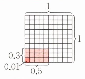 |计算小数乘法$0.3×0.5$。想:把整个正方形看作单位“1”,平均分成了(