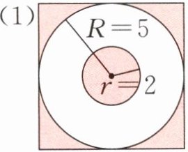 解析 题图中空白部分为圆环,先求出圆环的面积,再用正方形的面积减去圆环的面积即为涂色部分的面积。
