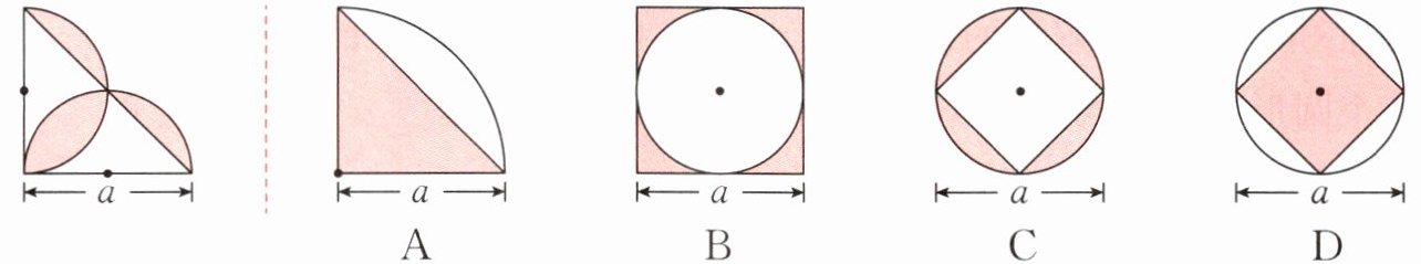 解析 如图所示,涂色部分的面积可分为四小块,这四小块与选项C中的涂色部分形状、大小一样,所以选项C正确。