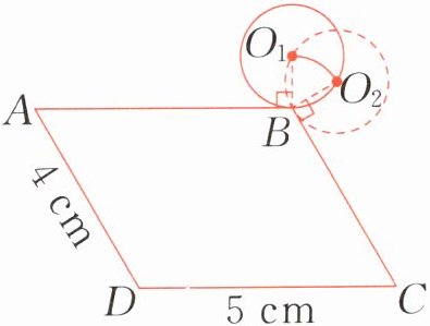 如图,圆O沿平行四边形ABCD外围滚动一周。若圆O的半径为1 cm,∠ABC= 120°,圆心O走过的距离是多少厘米?圆心O经过顶点B时的路径弧$O_1O_2$的长为多少厘米?(π取3)