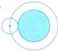 用笔戳进一个圆形纸片的圆心,让圆形纸片沿下面的圆的外围滚动一周,圆心的移动轨迹是什么?在下图中画一画。结合你所画的轨迹想一想,将下表补充完整。