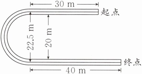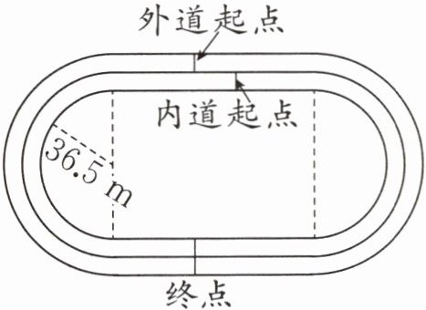 4 两名选手在 400 m 的跑道上进行 1000 m 跑步比赛,他们各跑一条跑道,每条跑道宽1.25 m。外道选手的起点应比内道选手的起点前移多少米?