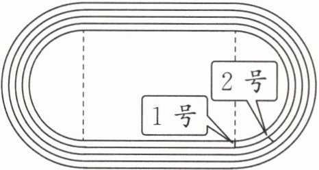 解析 设两名运动员所在跑道弯道的半径分别为r₁m和r₂m。同一跑道的两个弯道合起来就是一个完整的圆,两名运动员跑一圈时就只是在弯道跑的长度不同,分别是2πr₁m和2πr₂m,相差的长度就是2π(r₂-r₁)m。