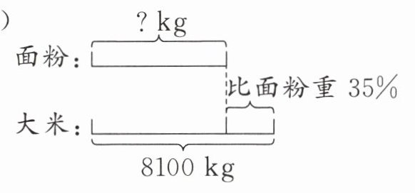 解析 大米比面粉多35%,把面粉的质量看作单位“1”,大米的质量是单位“1”的(1+35%),面粉的质量=大米的质量÷(1+35%)。