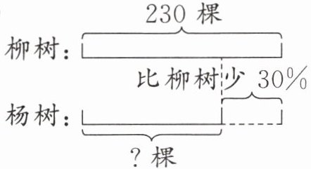 解析 杨树比柳树少30%,把柳树的棵数看作单位“1”,杨树的棵数是单位“1”的(1-30%),杨树的棵数=柳树的棵数×(1-30%)。