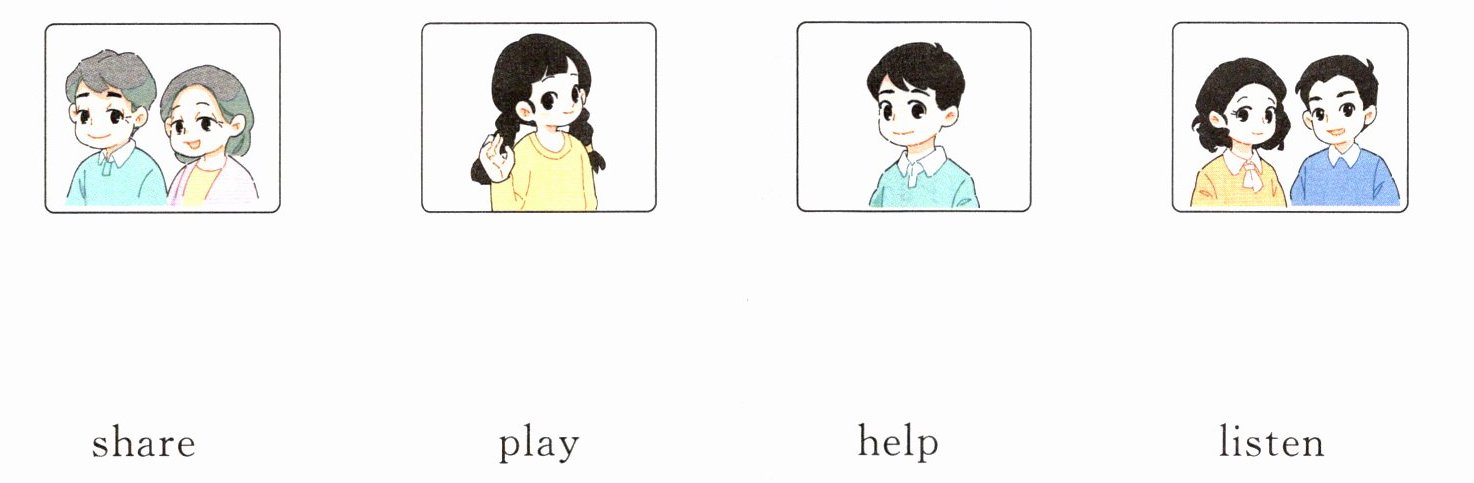 依据1:I love my dad and mum. They help me.分析:第四幅图中人物为爸爸妈妈。故将第四幅图与help连线。