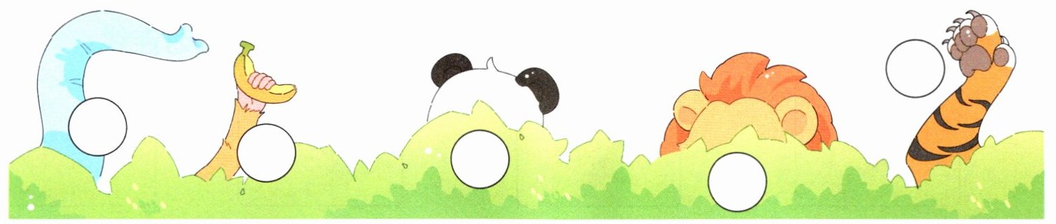 一、在动物园的自然生态模拟展区里,同学们看到了一些藏在草丛中的动物。看图,将动物名称的序号写在圆圈内。