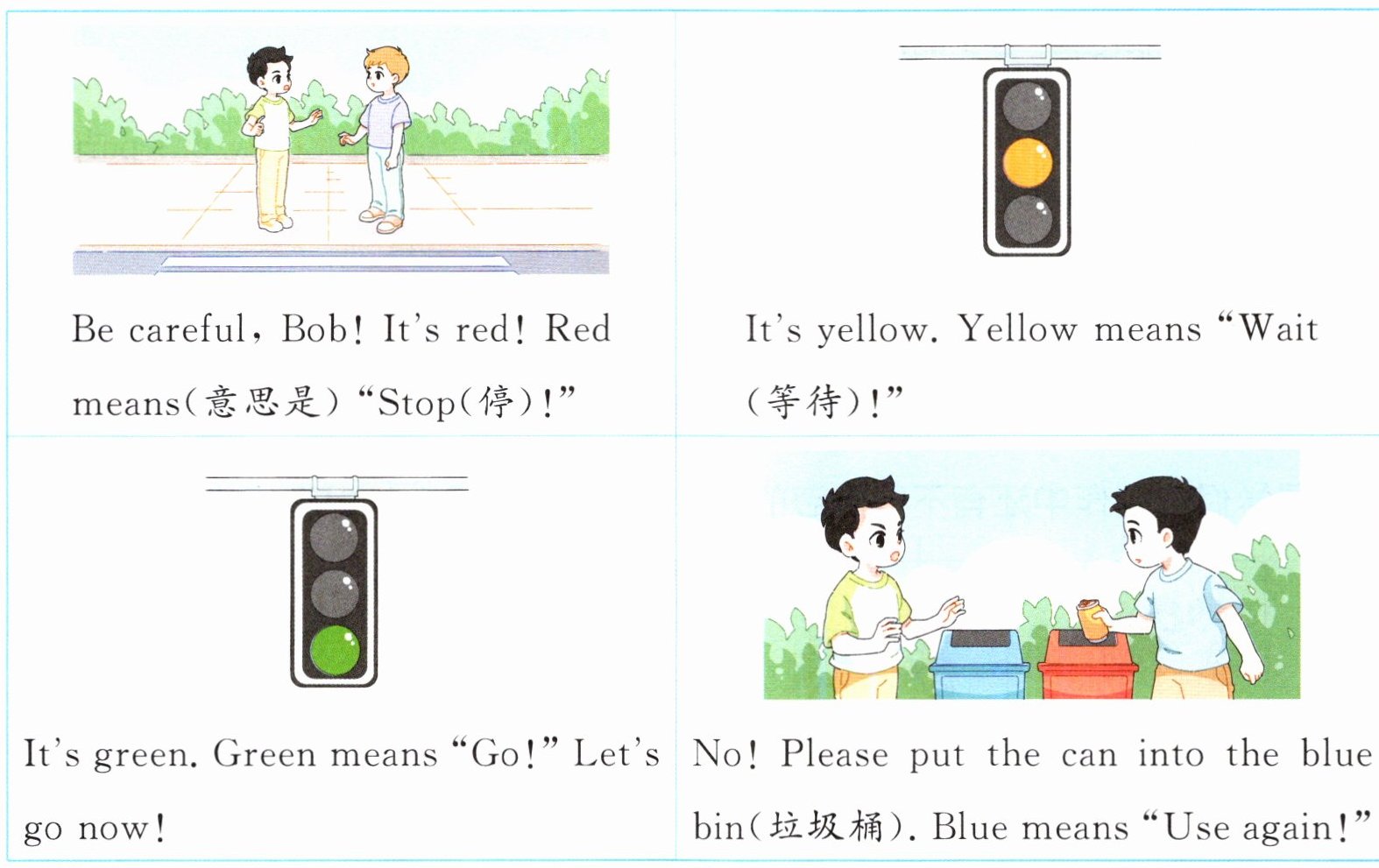 Use again! Stop! Go! Wait!