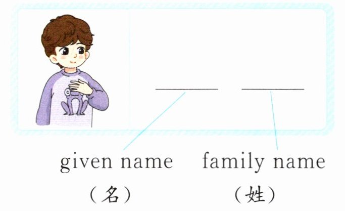 Step 2:制作自己的姓名牌。在圆圈中画出你的头像,并在横线上写出你姓名的英文表达方式。