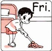 5. 关键词: clean my room、Friday,故第一幅图标5。