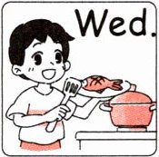 3. 关键词: cook the fish、Wednesday,故第五幅图标3。