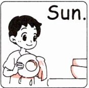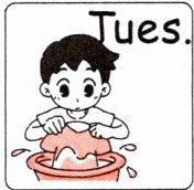 2. 关键词: wash clothes、Tuesday,故第七幅图标2。